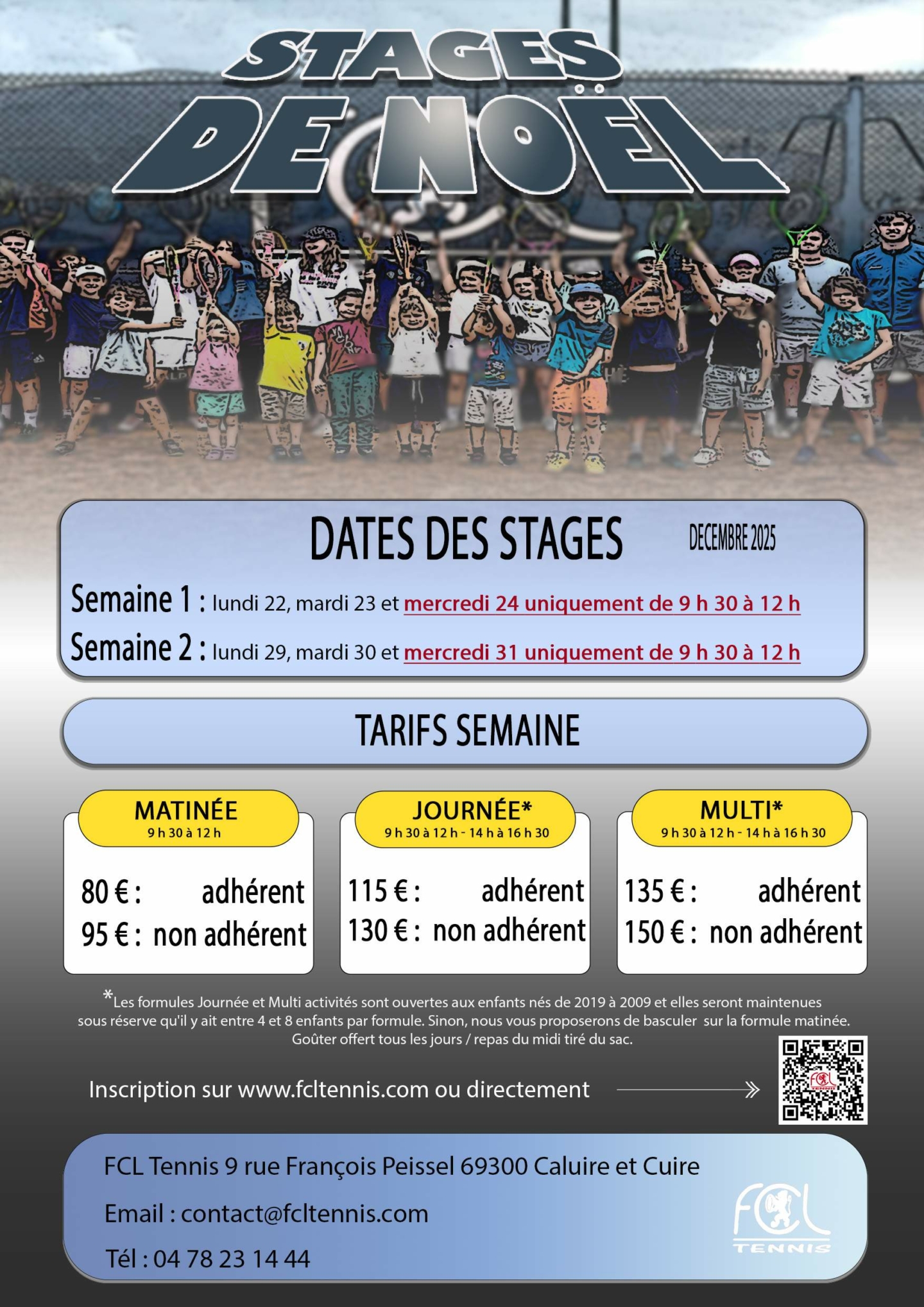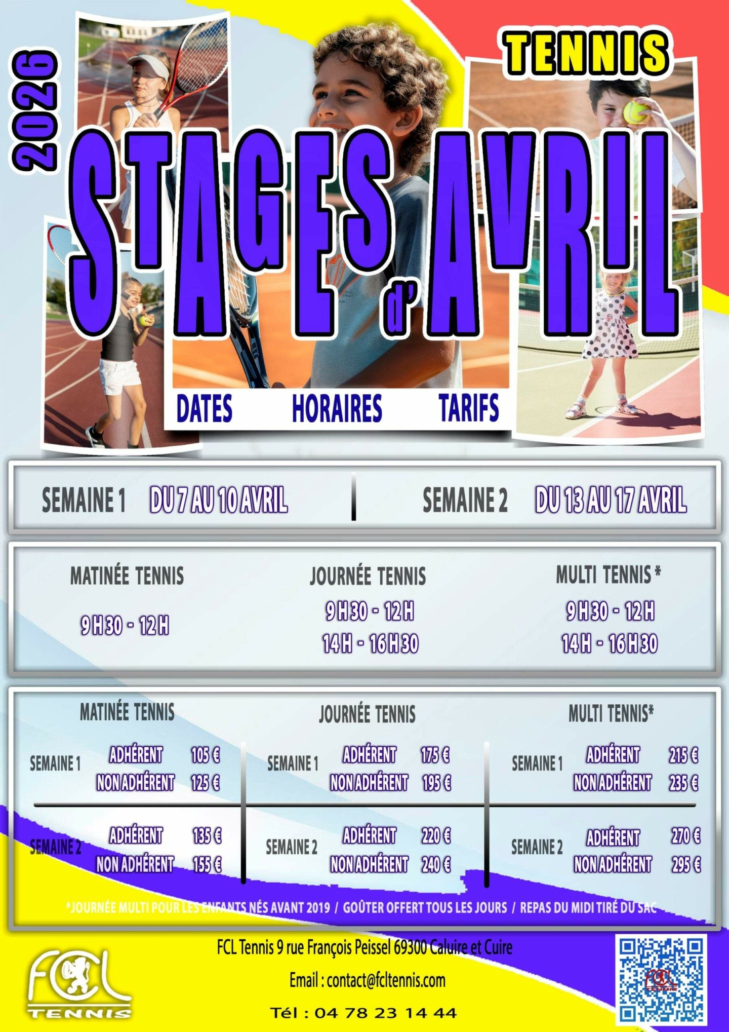 Le FCL Tennis sera heureux d'accueillir vos enfants au sein de notre multi structure sportive.